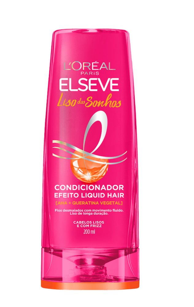 O Condicionador Efeito Liquid Hair sela e restaura a superfície da fibra para um liso com efeito liquid hair: desmaiado, com movimento super fluido e brilho intenso. Enriquecido com AHA + QUERATINA VEGETAL, Elseve Liso dos sonhos é o nosso 1º tratamento efeito botox* em casa que transforma os fios para 1 semana de cabelos lisos e à prova de umidade